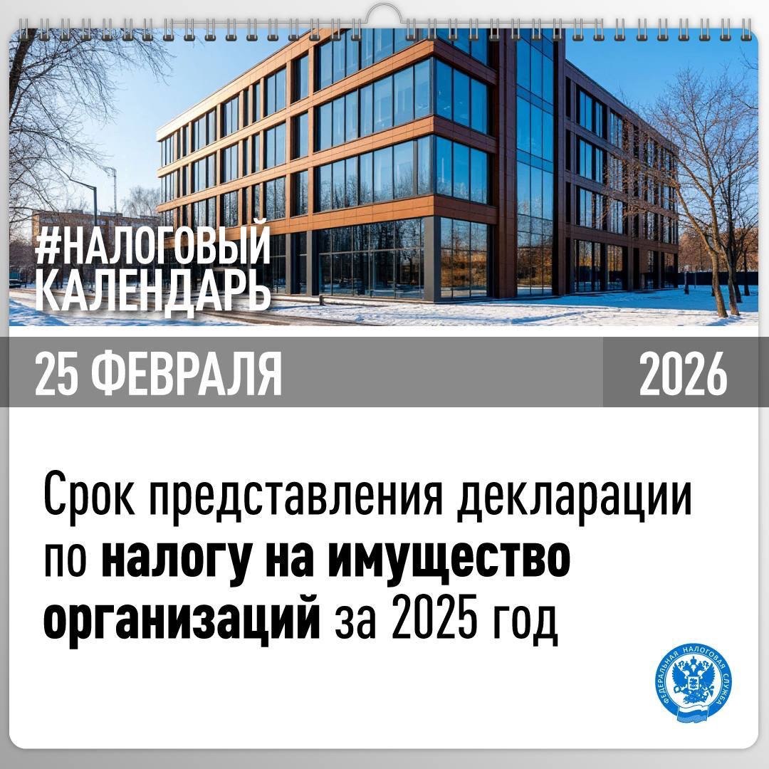 Декларации по налогу на имущество организаций по итогам 2025 года должны быть представлены юридическими лицами в налоговые органы не позднее 25 февраля.