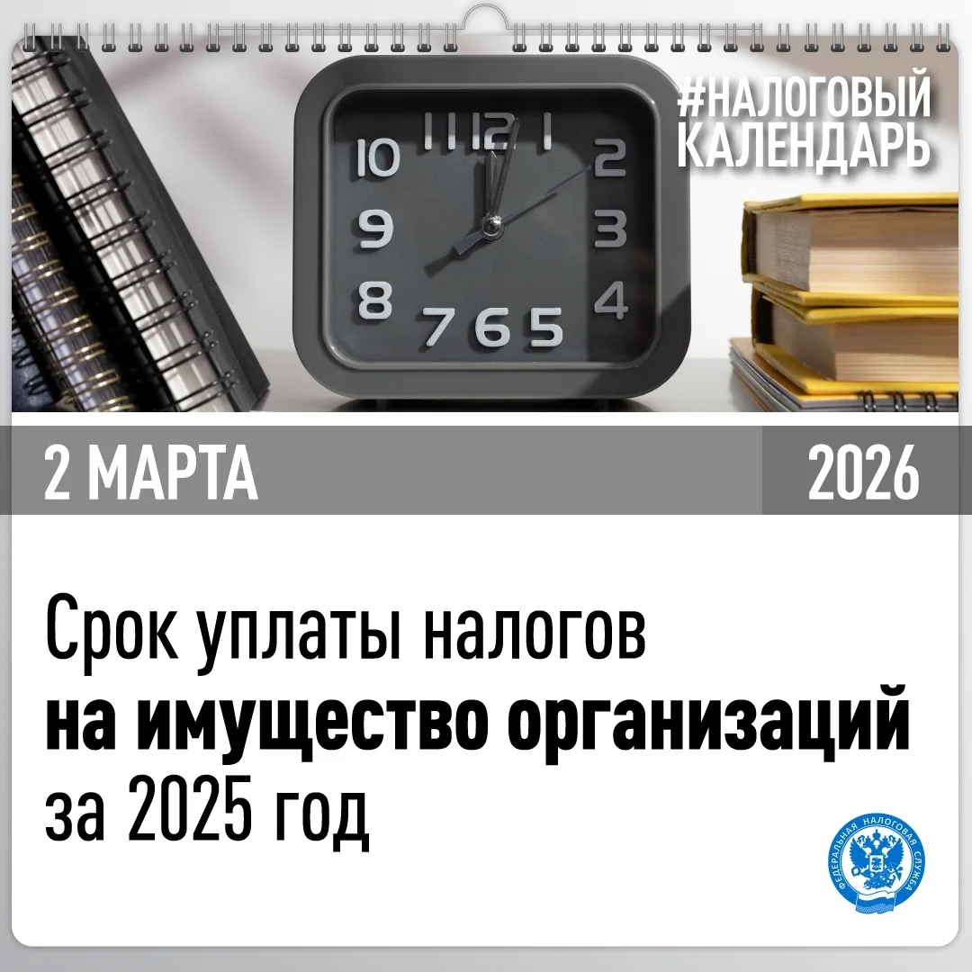 В этом году организации должны уплатить налоги на имущество за 2025 год не позднее 2 марта 2026 года. Срок переносится с 28 февраля на ближайший рабочий день.