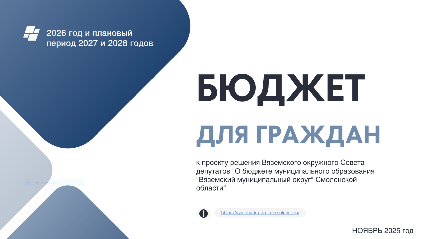 В разделе «Бюджет для граждан» подраздел "БЮДЖЕТ ДЛЯ ГРАЖДАН 2026" размещена брошюра, разработанная в соответствии с проектом решения Вяземского окружного Совета депутатов «О бюджете муниципального образования «Вяземский муниципальный округ» Смоленской области на 2026 год и на плановый период 2027 и 2028 годов».